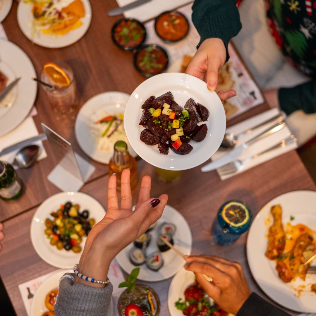 Swap the spreadsheets for sparkling lights and let the celebrations begin. At Jimmy’s, your office party turns into a feast fit for a king. One fixed price, hundreds of dishes to choose from — easy to budget and packed with all the favourites: from Sushi to Nachos, Indian street food and curries, to Noodles, peri peri chicken, steaks, pasta, stir fry, and pizza. Even the fussiest eaters will be satisfied.