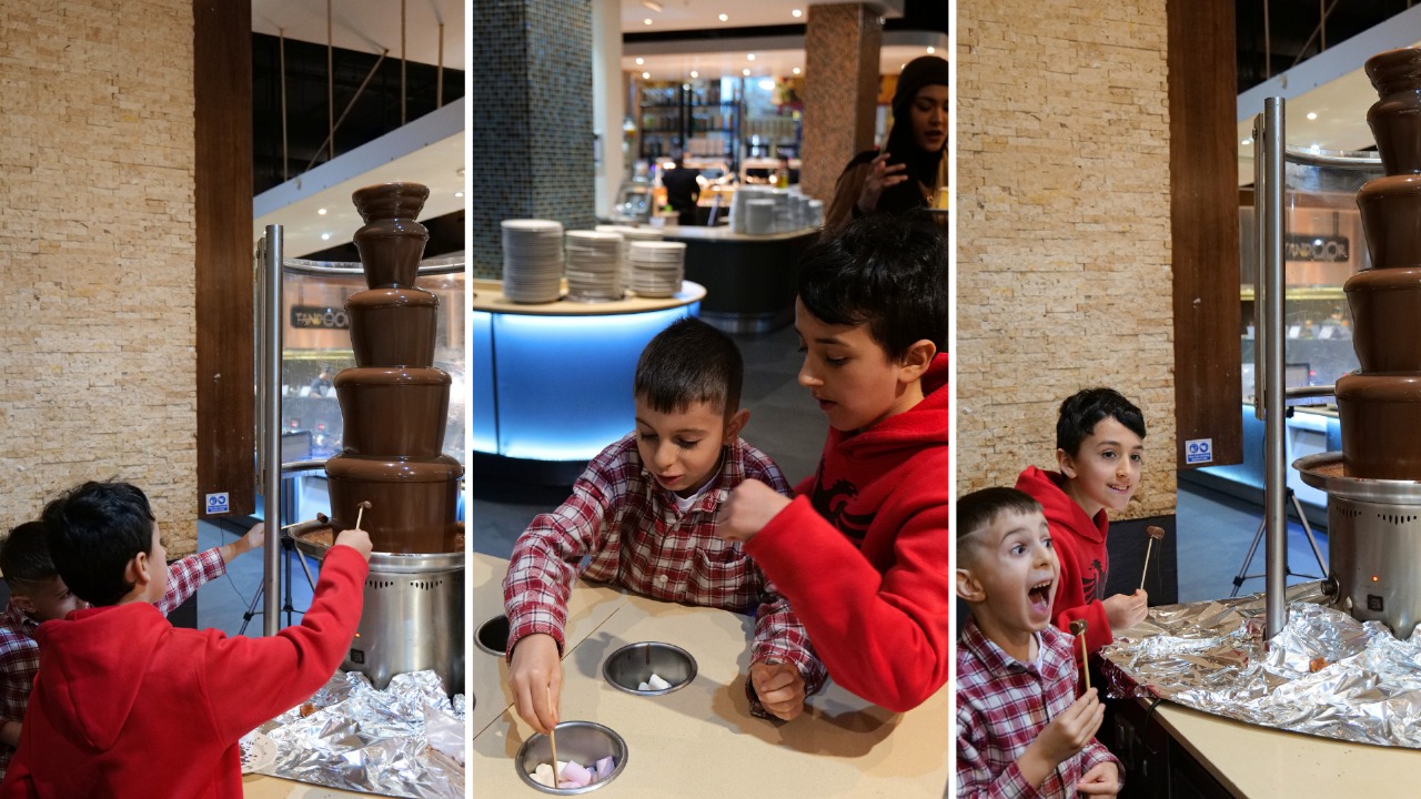 Kids can enjoy endless chocolatey fun with our flowing chocolate fountain, creamy ice creams, and colourful desserts that make every bite feel like a celebration.